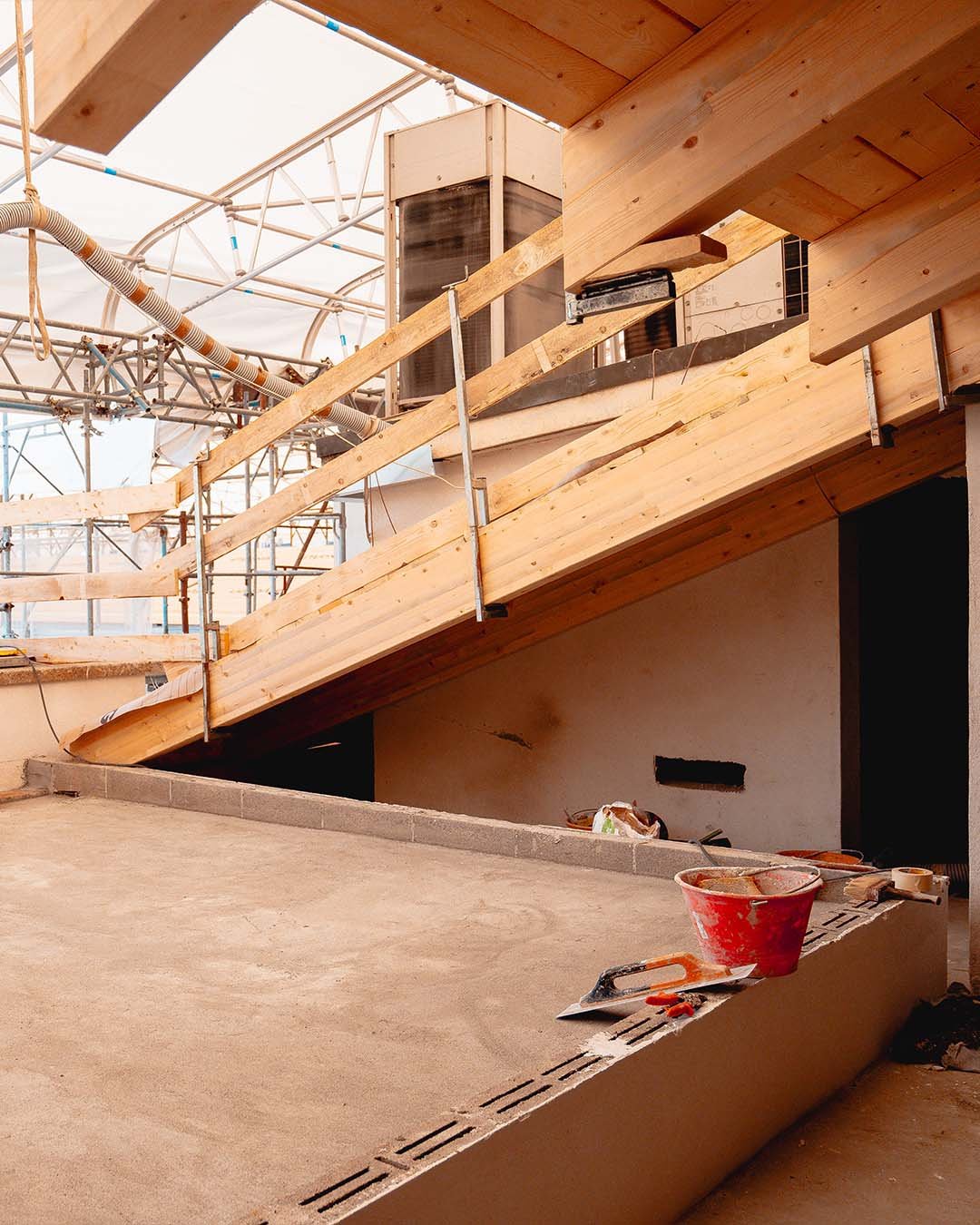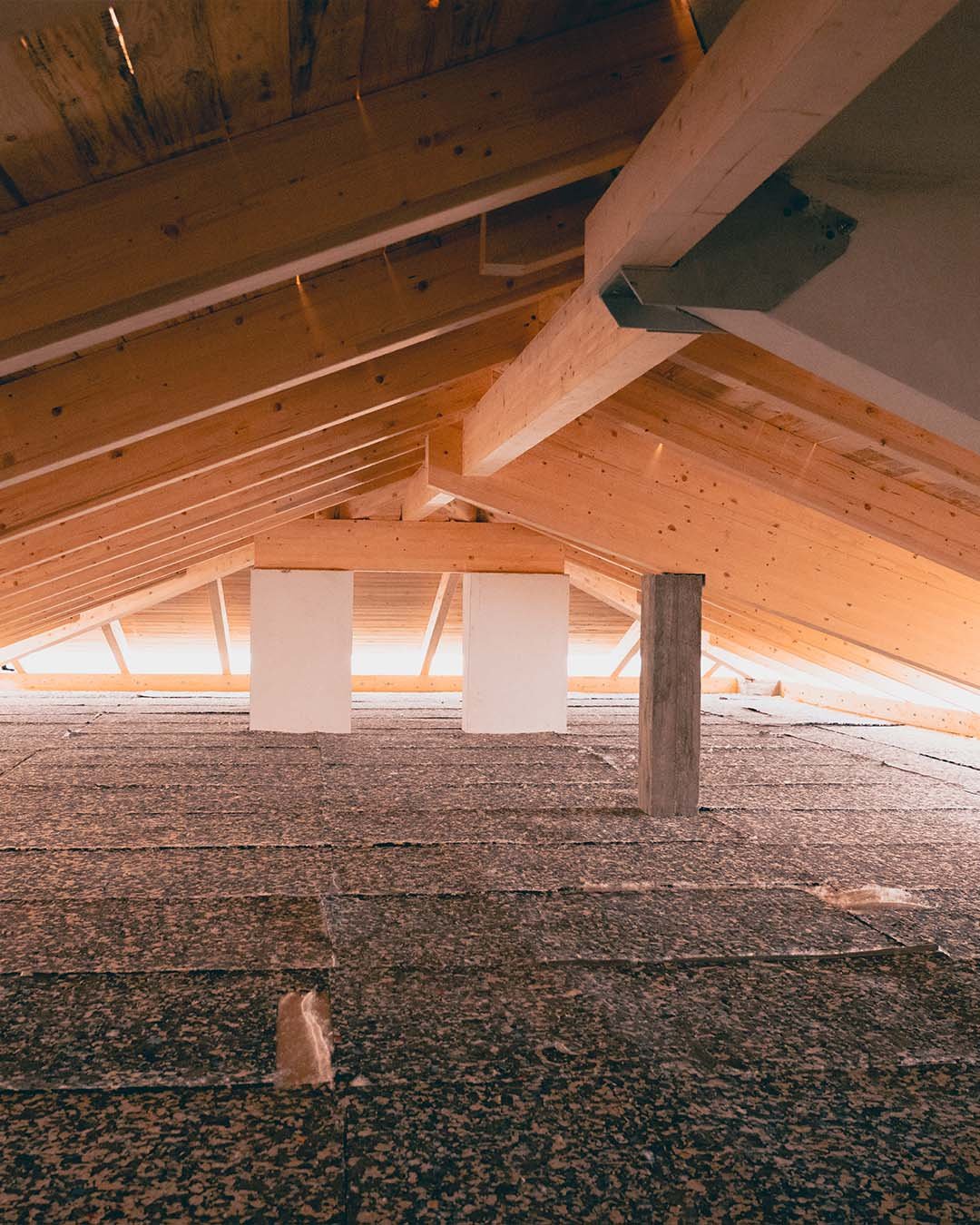 - Copertura e impermeabilizzazione: nuova struttura di copertura in legno lamellare con applicazione di pannello prefabbricato sandwich (spessore 120 mm) in accoppiato con lamiera di alluminio.